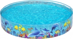 La grande piscina circolare pieghevole BESTWAY è ideale per il giardino o la casa di vacanza. La struttura si stabilizza da sola una volta riempita, le robuste pareti in PVC resistono all’uso quotidiano e la grafica marina con delfini e pesci entusiasmerà subito i bambini. La piscina si pulisce facilmente, si ripiega e si ripone per la stagione successiva.