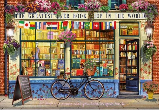 Il puzzle rappresenta una libreria colorata e dettagliata, che porta nostalgia e gioia a tutti gli amanti della letteratura.