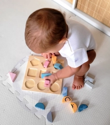 Inserire le forme nelle aperture corrette allena la coordinazione occhio–mano, la pazienza e la concentrazione fin dalla tenera età.