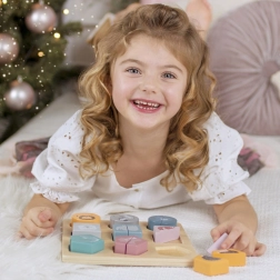 Il giocattolo è realizzato in legno resistente ed ecologico e rispetta rigorosi standard di sicurezza. Un ottimo regalo per bambini curiosi dai 18 mesi.