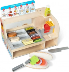 Scoprite il divertente bancone per panini in legno per bambini dai 3 anni, che favorisce il gioco creativo, lo sviluppo della motricità fine e l’apprendimento della preparazione dei cibi. Grazie ai pratici scomparti, agli ingredienti in legno e feltro e alle guide visive, i bambini possono creare facilmente il proprio gustoso “panino”.