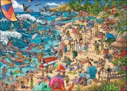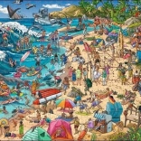 Il puzzle completato misura circa 70 x 50 cm ed è ideale per momenti di famiglia comuni o per rilassarsi da soli. Immergiti nell'atmosfera vivace della spiaggia, dove le persone si godono il surf, il nuoto e il relax in una giornata di sole.