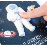 Quaderno formato A5 con copertina rigida. Il quaderno nero presenta sulla parte frontale una grafica a tema spaziale. Al centro della copertina c’è una morbida placca quadrata a forma di astronauta. Il quaderno ha 80 pagine a quadretti.