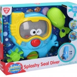 Acquario con mulino ad acqua trasforma il bagno del tuo bambino in un'esperienza emozionante. Usa un cucchiaio per riempire d'acqua gli occhiali della foca e osserva come i pesciolini nell'acquario danzano. Premi il naso della foca e goditi lo spettacolo acquatico con mulini colorati.