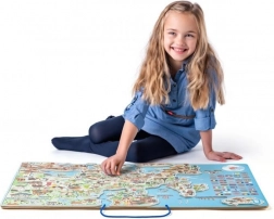 Questa mappa interattiva dell'Europa consente ai bambini di percepire l'Europa come un insieme pieno di curiosità. I bambini possono posizionare i pezzi che rappresentano i singoli stati sulla superficie magnetica, aiutandoli a consolidare la loro conoscenza della posizione dei paesi nel vecchio continente. Grazie alle immagini sui pezzi, i bambini possono facilmente riconoscere gli elementi caratteristici di ciascun stato, come monumenti architettonici, risorse naturali o prodotti specifici della zona.