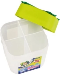 Il corpo in plastica robusta e il coperchio ben sigillante garantiscono lunga durata e uso sicuro. Il contenitore si lava facilmente ed è adatto per acquerelli, colori a dita o tempere.