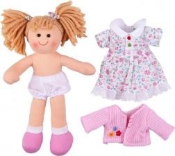 La bambola è realizzata in tessuto soffice con tratti ricamati, adatta fin dalla nascita e ideale per coccole e primi giochi.