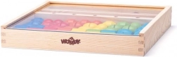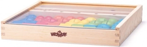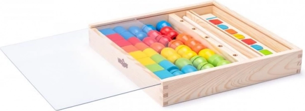 Questo strumento educativo in legno include 45 perle colorate, 5 carte a doppia faccia con modelli e 5 aste di legno, il tutto in una scatola di qualità. I bambini inseriscono facilmente le perle seguendo il modello, sviluppando concentrazione, coordinazione occhio–mano e la capacità di riconoscere colori e forme.