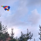 Questo aquilone vanta strisce arcobaleno vivaci che creano un incantevole effetto visivo durante il volo.