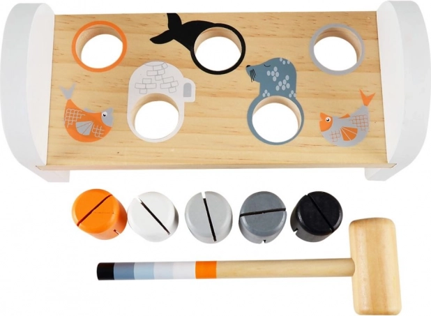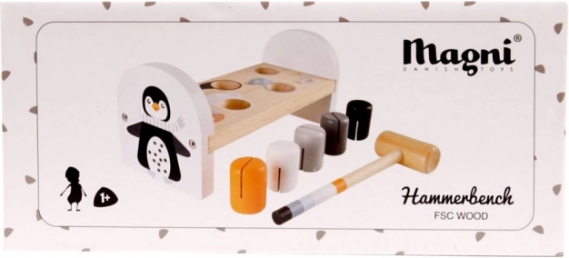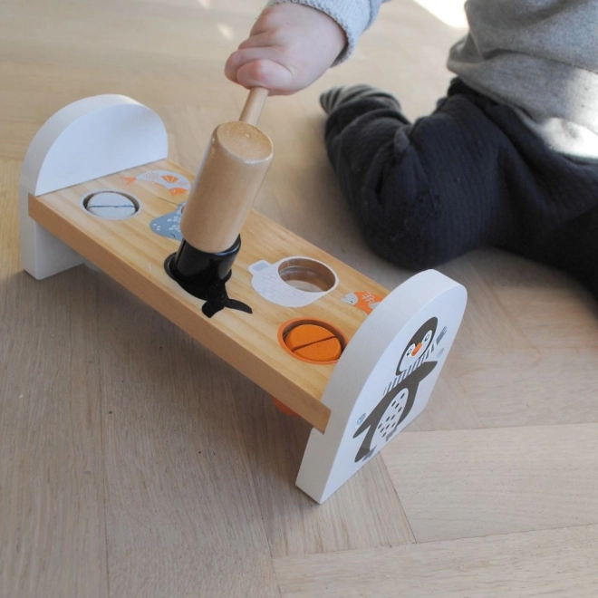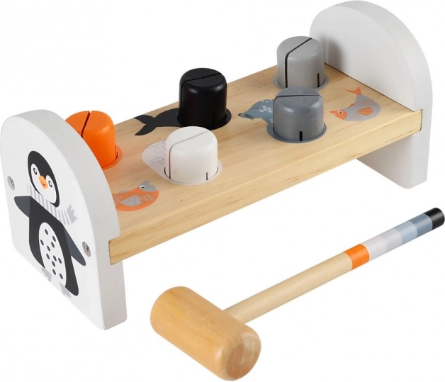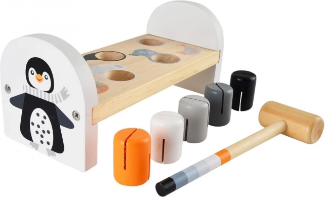 Questa solida panca con pioli in legno dal tenero motivo del pinguino offre ai bambini tanto divertimento e apprendimento. Con il martelletto i bambini battono progressivamente i pioli colorati, sviluppando in modo naturale abilità motorie, pazienza e ragionamento logico. Le dimensioni compatte sono ideali per le manine e per giocare sia a casa sia in viaggio.