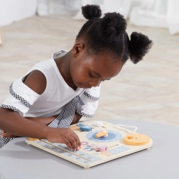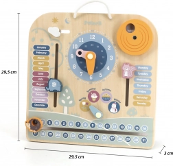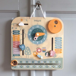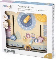 Calendario e orologio in legno PolarB Montessori è la perfetta combinazione di gioco e apprendimento. Aiuta i bambini a imparare a riconoscere l'ora e i giorni della settimana, ad apprendere le stagioni e il tempo mediante elementi interattivi.