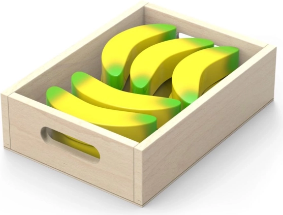 - - il set include 10 scatole con 10 tipi di frutta e verdura: pere, arance, kiwi, carote, funghi, limoni, mele, aglio, melanzane e banane,