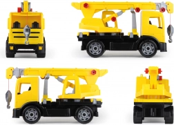 Robusta gru giocattolo in plastica per piccoli costruttori, con funzioni realistiche e tanto divertimento. Ha una lunghezza di 70 cm e, una volta estesa, raggiunge 115 cm. Grazie a 4 piedi stabilizzatori estensibili, alla rotazione del braccio di 270°, al argano funzionante con gancio e al controllo meccanico del braccio, i bambini potranno vivere un gioco di costruzioni autentico e sviluppare la motricità fine.