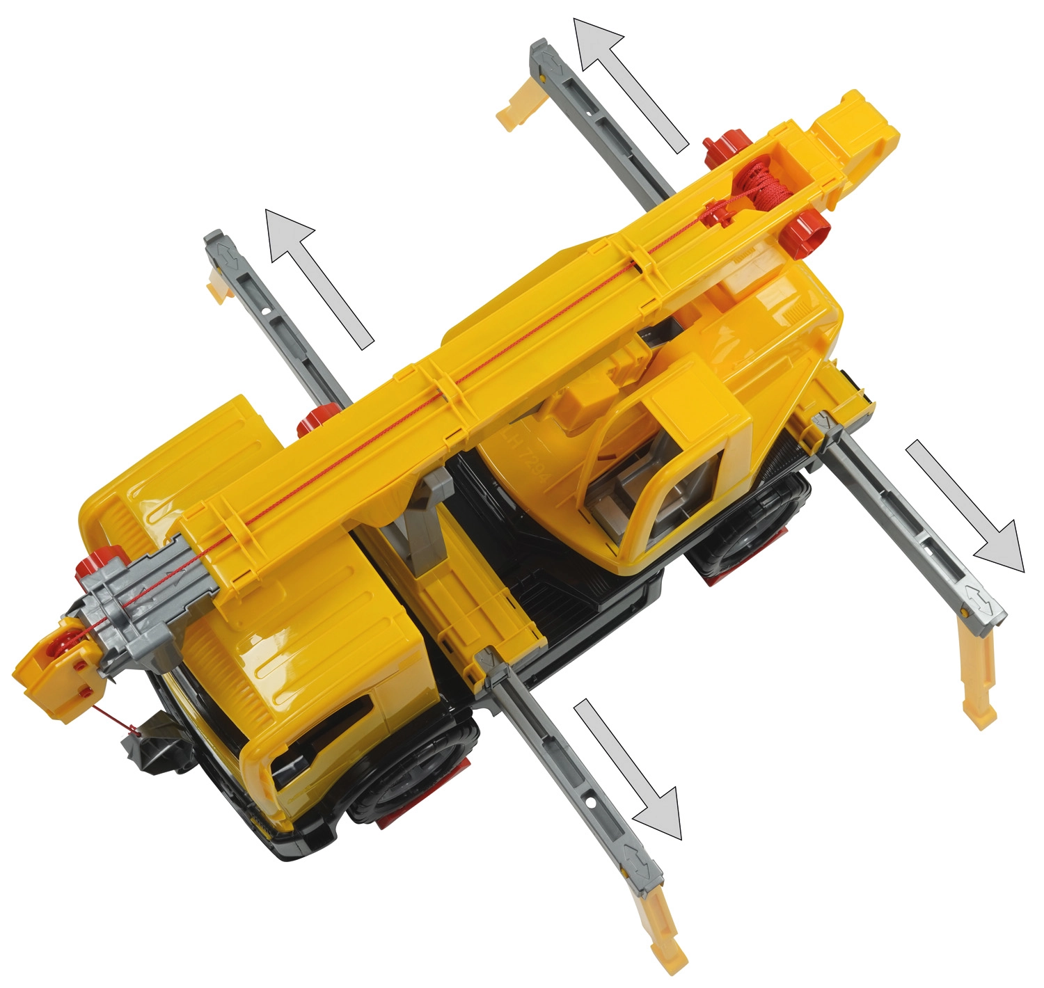 Il lungo braccio estensibile con controllo meccanico preciso consente di sollevare e abbassare carichi come in un vero cantiere.