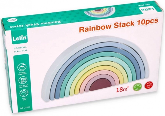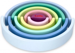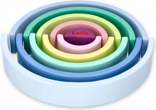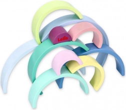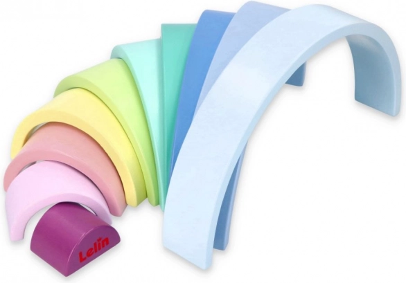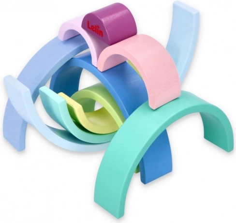 Gli archi in legno nei colori pastello come il blu, il verde e il rosa stimolano la conoscenza dei colori e il gioco creativo.