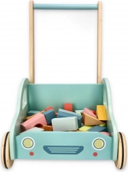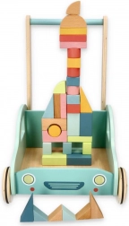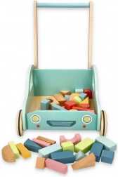I blocchi di legno colorati sviluppano la motricità fine, l’immaginazione e il pensiero logico. Il carrellino funge da pratico spazio di contenimento per i blocchi e le costruzioni finite.