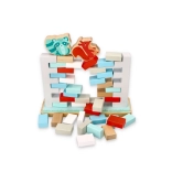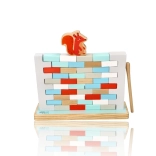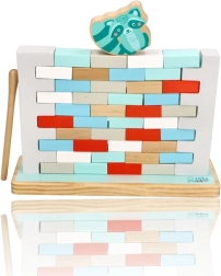 I bambini estraggono i mattoncini con la bacchetta di legno, allenano la precisione del movimento, la pazienza e la coordinazione occhio–mano, senza far crollare l’intero muro.