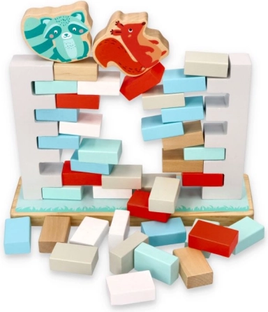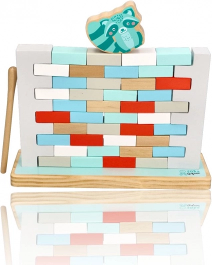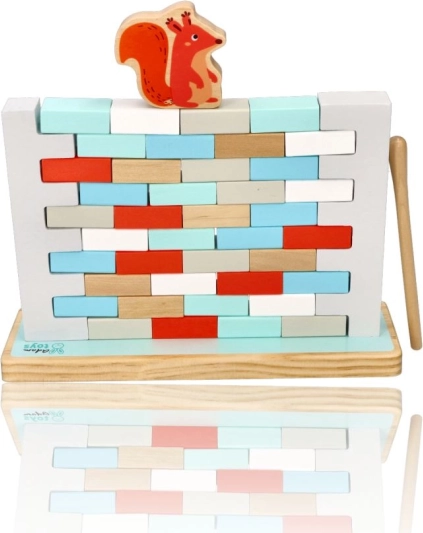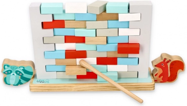 NEZBOŘ ZEĎ è un avvincente gioco di abilità che sviluppa pazienza, precisione e collaborazione di squadra. L’obiettivo è estrarre gradualmente i mattoncini dal muro con la bacchetta di legno senza far crollare la struttura, mantenendo gli animaletti in cima in equilibrio. Il gioco è ideale per i bambini in età prescolare e per i momenti in famiglia.