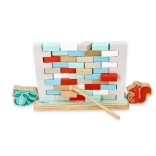 Grazie al legno resistente e ai bordi levigati, il gioco è piacevole e sicuro. I mattoncini colorati favoriscono la percezione dei colori e un approccio creativo alla costruzione, mentre l’uso della bacchetta allena la sensibilità delle dita e la precisione dei movimenti.