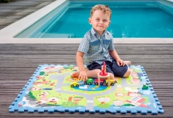 Il puzzle da pavimento in schiuma Villaggio è la scelta ideale per le camerette dei bambini e le aree gioco. I pezzi con stampa colorata creano una superficie di gioco piacevole al tatto, facile da pulire e che al tempo stesso protegge i bambini dal freddo del pavimento. La superficie zigrinata senza tasselli rimovibili aumenta la sicurezza durante il gioco.