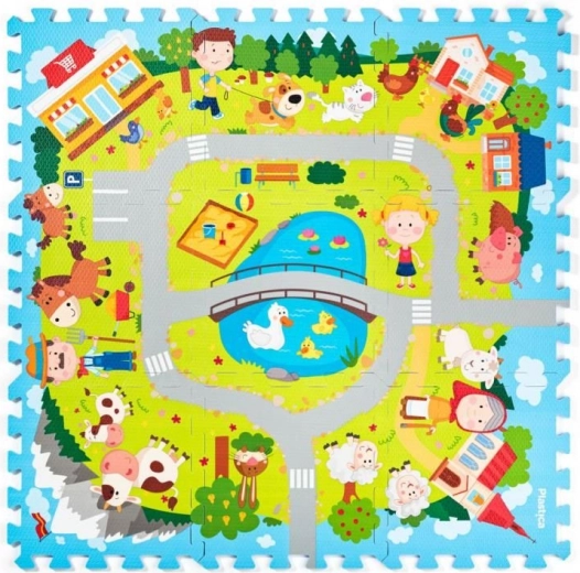 Create per i bambini uno spazio di gioco comodo e sicuro con il puzzle in schiuma Villaggio di PLASTICA. Tappeto morbido e lavabile che isola dal freddo, attenua i rumori ed è atossico. La confezione include 9 pezzi quadrati con stampa colorata che, una volta assemblati, formano una base di circa 90 × 90 cm.