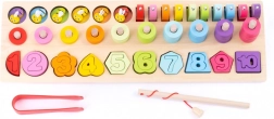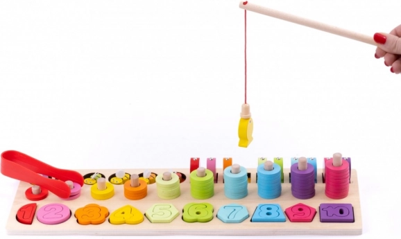 - Numeri 1–10, anelli colorati, forme, pezzi per la pesca, canna magnetica, pinzette