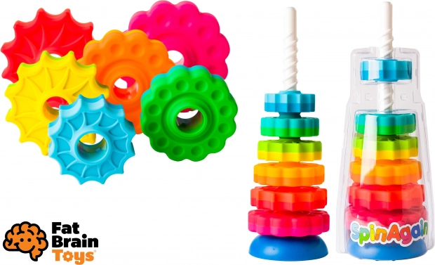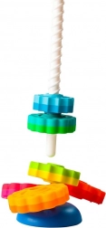 Un giocattolo con cui si allena anche la motricità del bambino. Sei dischi diversi ruotano verso il basso a vite e si impilano secondo la propria fantasia. I dischi alternano forme di fiori e stelle e ciascuno ha due colori.