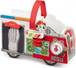 Questo veicolo di soccorso in legno, a forma di autopompa, conquisterà i piccoli eroi grazie alla cura dei dettagli, allo spazio porta-accessori e alle grafiche con licenza ufficiale di PAW PATROL. Grazie ai bordi lisci e alla struttura robusta, il gioco è sicuro e durevole.