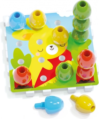 Il mosaico Jumbo Peggy è un giocattolo ideale per i più piccoli. Grazie ai componenti grandi e arrotondati, si afferrano e si assemblano facilmente. I bambini possono creare straordinarie composizioni tridimensionali sovrapponendo i pioli.