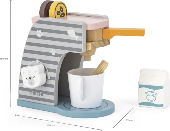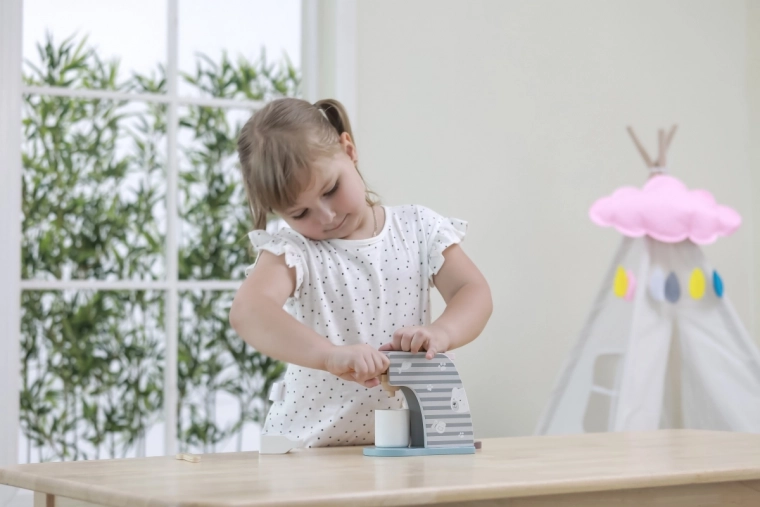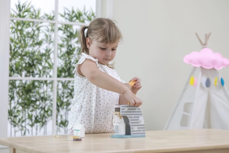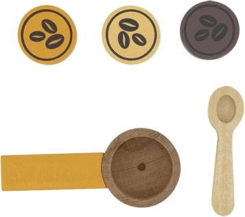 Elegante macchina da caffè in legno per bambini dai 3 anni che porta una preparazione del caffè realistica in ogni cucinetta dei piccoli. Grazie alla manopola girevole, al portafiltro a leva e agli accessori inclusi (tazzina, cucchiaino, capsule e “latte”) sviluppa motricità fine, immaginazione e gioco di ruolo. Dimensioni compatte e legno laccato di qualità garantiscono un gioco sicuro e resistente ogni giorno.