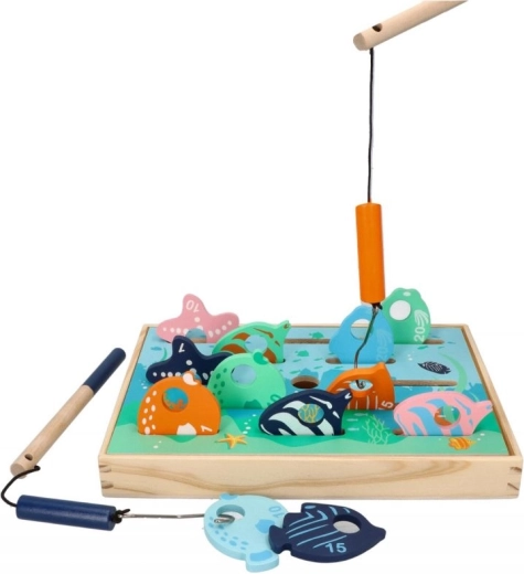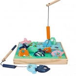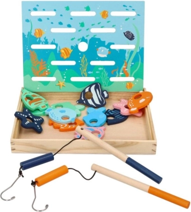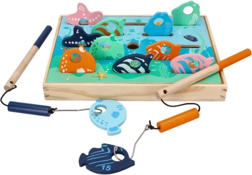Il gioco di pesca in legno è progettato per i bambini che amano giocare e imparare cose nuove. Questo set interattivo include canne da pesca in legno con magneti e pesci colorati, progettati per simulare la cattura di pesci reali.