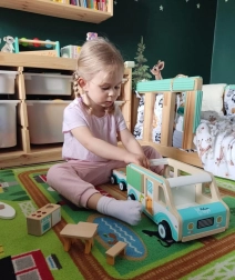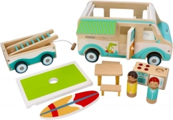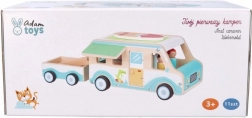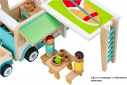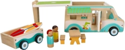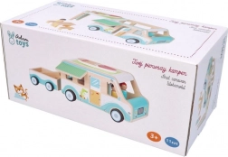 Goditi il gioco divertente con il caravan in legno che porta l'atmosfera di un vero viaggio. Grazie all'interno spazioso e al rimorchio, puoi portare con te anche altri giocattoli e accessori. Questo set in legno stimola la creatività e incoraggia il gioco fantasioso.