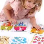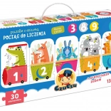 Scopri un divertente puzzle educativo con il tema di un lungo treno e dei suoi passeggeri. Il set include 30 pezzi, di cui 10 dischetti rimovibili con numeri da inserire nei fori corretti. Ideale per bambini dai 3 anni – sviluppa la motricità fine, la logica e l’apprendimento del conteggio fino a 10 attraverso il gioco creativo con pezzi grandi e resistenti.
