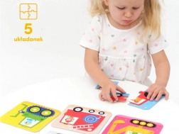 Scopri i primi puzzle per i più piccoli! Il set include 5 puzzle colorati da 4 pezzi con simpatici conducenti e veicoli. I pezzi robusti sono perfetti per le manine, favoriscono la motricità fine, l’attenzione e l’apprendimento di colori e nomi. L’originalità sta nella possibilità di scambiare i pezzi tra i puzzle per creare combinazioni personalizzate.