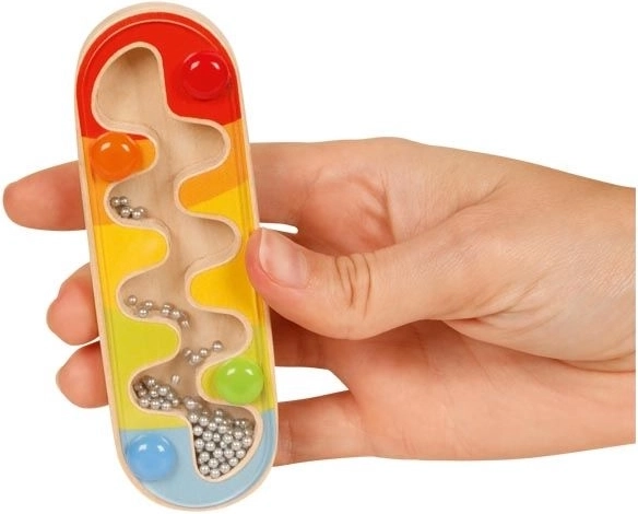 Le piccole sfere producono un piacevole fruscio che ricorda la pioggia – ideale per percepire il ritmo e per un gioco tranquillo.