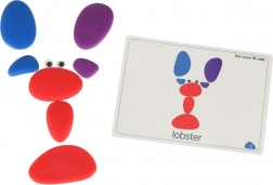 Sassolini di diverse dimensioni permettono di comporre animali, oggetti e immagini di fantasia. Le carte fungono da ispirazione e da sagome per la creazione autonoma.