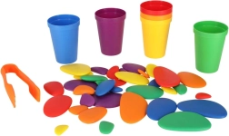 I sassolini colorati, i bicchierini e le carte con attività guidano i bambini da compiti semplici a più avanzati: dalla classificazione per colore fino all’addizione e alla creazione di motivi.