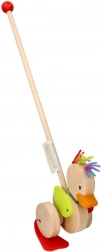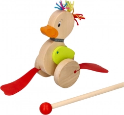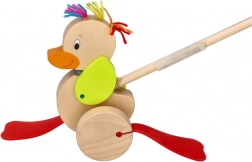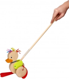 Scopri la magia del giocattolo in legno che favorisce lo sviluppo motorio e fisico del tuo bambino. L'anatra con elementi colorati e ruote multicolore si muove sul pavimento e stimola i primi passi e la coordinazione. Realizzato in legno naturale, il giocattolo assicura un divertimento sicuro e durevole per i bambini dai 18 mesi.
