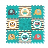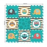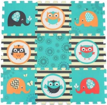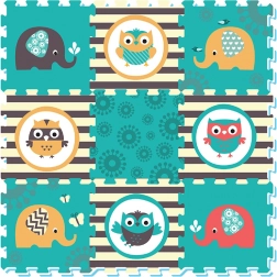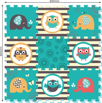 Il puzzle in schiuma con motivi di Gufi ed Elefanti in colori vivaci attira l'attenzione di ogni bambino.