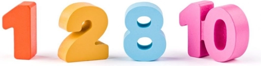 Dodici numeri colorati a forma di blocchi si inseriscono nelle aperture corrispondenti. I bambini sviluppano motricità fine, riconoscimento di forme e colori e il pensiero logico.