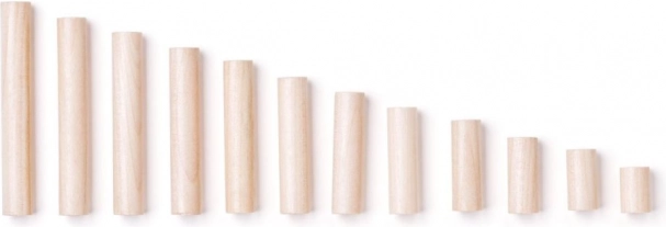 Il set include 12 piolini e 78 anelli colorati, che i bambini associano ai numeri: ad esempio, al numero 5 corrispondono cinque anelli verdi. In questo modo consolidano in modo ludico il conteggio, i colori e la relazione numero–quantità. L’intero set è realizzato in legno, ha bordi levigati e rispetta le normative CE.