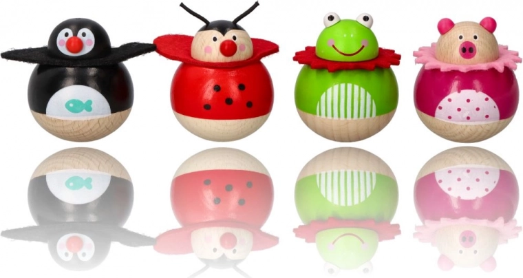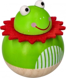 La base arrotondata assicura che la ranocchia, dopo ogni spinta, ritorni da sola in posizione verticale. Ideale per le prime scoperte di equilibrio e rapporto causa–effetto.