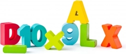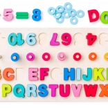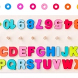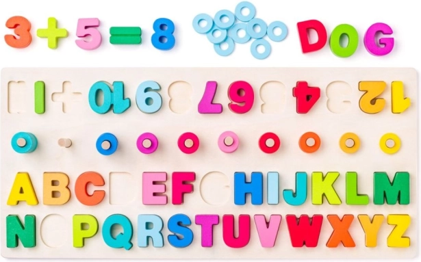 Scopri il mondo dell'istruzione, dove il divertimento si unisce all'utilità. La tavola educativa in legno offre ai bambini non solo la conoscenza delle lettere e dei numeri, ma anche l'esercizio delle operazioni matematiche di base. La tavola è dotata di pezzi rimovibili con numeri, simboli matematici e l'intero alfabeto in colori vivaci. Dieci pioli di legno con anelli colorati permettono un'istruzione visiva e tattile.