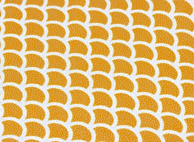 Il materiale utilizzato è progettato per resistere all'usura e al tear. Il motivo con semicerchi arancioni e punti bianchi su sfondo bianco dona alle pinne un'elegante impressione visiva.