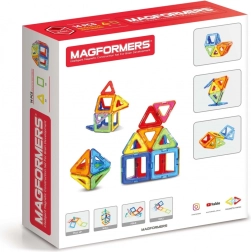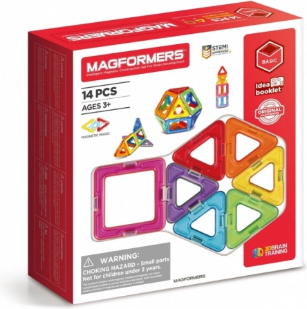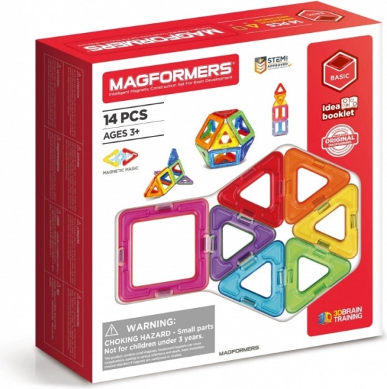 MAGFORMERS BASIC 14 sono blocchi con potenti magneti al neodimio integrati, che si attraggono sempre tra loro. Basta avvicinare le facce di due blocchi e si collegano immediatamente. Con i pezzi modellati secondo forme geometriche puoi costruire splendide strutture tridimensionali. Durante il gioco puoi usare il manuale incluso o altri esempi sul sito magformersworld.com, oppure affidarti alla tua fantasia. Il set contiene: 8 triangoli; 6 quadrati.