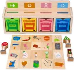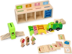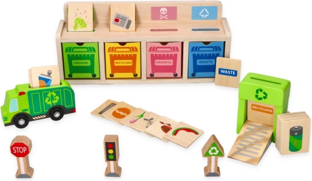 Il giocattolo in legno offre ai bambini la possibilità di imparare a separare diversi tipi di rifiuti, contribuendo alla loro formazione ecologica di base.
