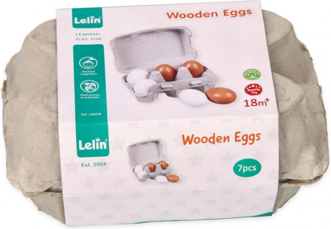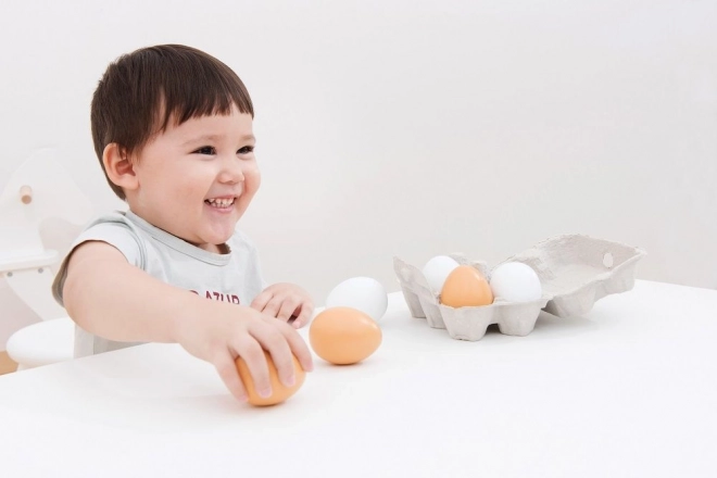 Questo set di uova di legno è progettato per permettere ai bambini di coinvolgere la fantasia e sviluppare abilità manuali durante il gioco. Le uova sono sicure, grazie ai materiali utilizzati che rispettano le norme di sicurezza europee CE.