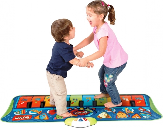Il tappetino musicale ha dei tasti che, quando premuti, riproducono un’ampia varietà di suoni. Sono presenti anche pulsanti speciali con cui il bimbo può suonare melodie con 6 diversi strumenti e tasti con i suoni di 4 simpatici animali. Le grandi dimensioni del tappetino (fino a 130 cm di lunghezza e 40 cm di larghezza) permettono al bambino di attivare i suoni in qualsiasi modo: non solo con le mani, ma anche in piedi, correndo e ballando! In questo modo il tappetino musicale Smily Play influisce positivamente sulla coordinazione motoria del bimbo e lo aiuta a sviluppare le abilità motorie grossolane, mentre si diverte con melodie allegre. Inoltre stimola i sensi del tatto e dell’udito e sviluppa il senso del ritmo.