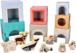 Illustrazioni tematiche e intagli nei cubi permettono di costruire casette, uno zoo o un intero villaggio polare. Un gioco senza confini che sviluppa fantasia e autonomia.