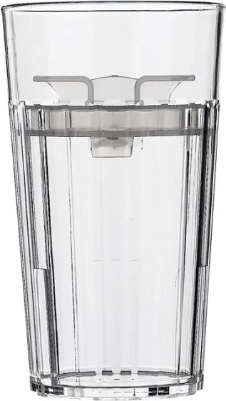 La forma zigrinata del bicchiere assicura una presa sicura e comfort durante la bevuta.
